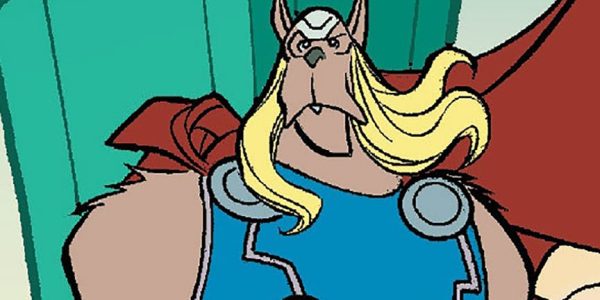 Thor já é um deus maneiro, cachorros também são maneiros. Então nossa lista não poderia ficar sem a versão canina do deus nórdico! Thrr teve sua primeira aparição em Peter Porker: Spider Ham #5, que basicamente é uma versão em que Peter Parker é um porco. Thrr é da terra de Arfgard e faz parte do grupo Scavengers, em que todos os nossos heróis conhecidos de Vingadores têm suas versões antropomórficas. Thrr também está presente em Guerras Secretas junto com outras versões diferentonas do herói.