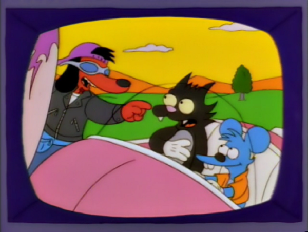 Realmente eles parecem pensar em tudo. A Fox pretendia apresentar o novo personagem do desenho animado "Comichão e Coçadinha", no episódio The Itchy & Scratchy & Poochie Show. Eles então pediram aos roteiristas de Os Simpsons para acrescentarem o cachorro.