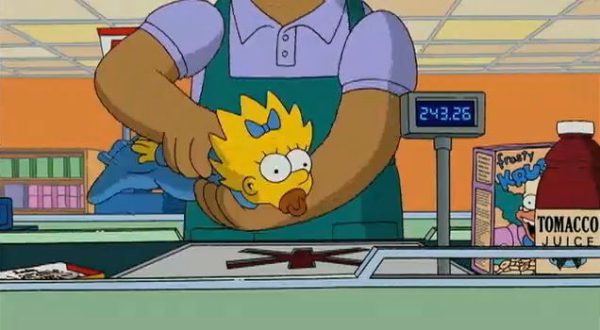 Na abertura, a personagem Maggie passa na máquina registradora do supermercado. Quando ela vale? Segundo pesquisas, o valor é o custo mensal gasto com um bebê. O mais curioso é que o preço foi mudando de acordo com a inflação.