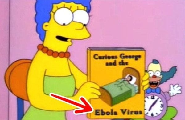 São várias supostas previsões que Os Simpsons fizeram. Uma delas é a epidemia da ebola. Em um episódio de 1997, Bart está doente. Sua mãe entrega para ele um livro chamado "The curious George and the Ebola Virus". Mas o que você acha, coincidência ou uma previsão real?