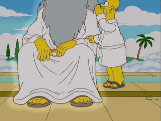 Dá para imaginar quem tem cinco dedos em Os Simpsons? Apenas Deus e Jesus têm cinco dedos, dando a eles algum tipo de "superioridade".